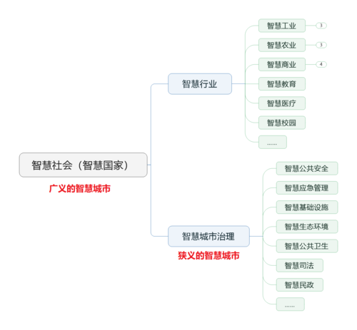 关于智慧城市,我来说点能听懂的……来源:鲜枣课堂 大家好,我是小枣君。今天这篇文章,我想和大家聊聊智慧城市。 当今时代,在我们ICT行业,有两个词的曝光率最高。一个是5G,另一个就是智慧。 进入21世纪,人类科技一路狂奔,计算和连接的能力突飞猛进。物联网、云计算、大数据、人工智能,这些新概念接连出现,推动整个社会加速走向信息化、数字化和智能化。 各行各业的大佬,都在紧盯科技趋势,希望率先引入技术,提升生产效率,实现数字化转型。于是乎,各种狂蹭热点的名词层出不穷,例如5G(智慧)工厂、5G(智慧)园区、5G(智慧)农业、5G(智慧)商场,等等。 作为人类文明的重要标志,城市,经过数千年的发展,变得越来越庞大。大量的人口聚集,引发了交通拥堵、治安混乱、资源匮乏等众多问题。作为城市的管理者,政府,迫切希望借助信息通信技术,来解决问题,延续城市的健康发展。 于是,Duang!“智慧城市”诞生了。 在详细解释智慧城市之前,我想先澄清很多人对智慧城市的误解。 我个人认为,智慧城市是一个不太准确的称谓。如果一定要这么叫,那么,它应该包括了一个广义的概念,还有一个狭义的概念。 广义的智慧城市,涵盖的范围很大,我觉得更应该叫智慧社会。 社会包括了不同的行业和领域,既包括个人,也包括企业,还包括政府。社会的应用,是最宽泛的。例如购物消费、家居生活、交通运输、公共安全、企业园区、教育医疗、生产制造、农林种植等。 而狭义的智慧城市,专指城市管理,也就是政府职能相关的领域。例如公共安全、应急管理、市政设施、环境治理、民生服务等。 狭义的智慧城市,应该是真正的智慧城市,最合适的名字是智慧城市治理或智慧城市管理。(无奈的是,不管是叫做智慧城治,还是叫做智慧城管,都不太合适。)